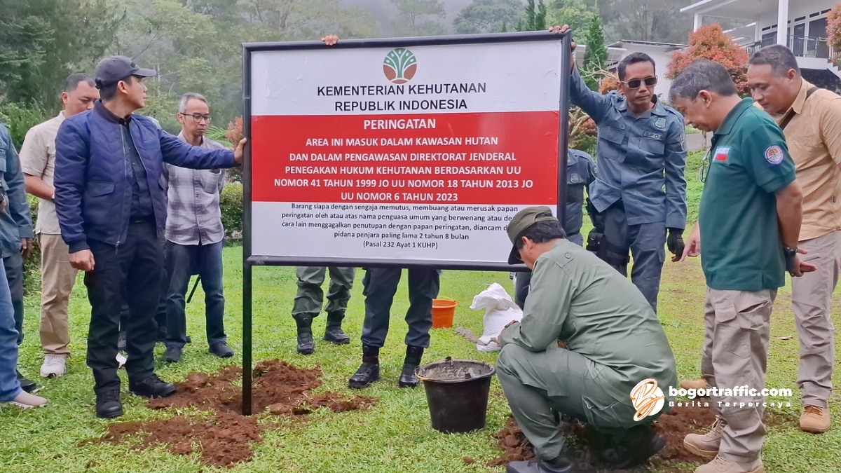 “Kementerian Kehutanan bersama Kementerian ATR/BPN dan Pemda Bogor hari ini melakukan penertiban tata ruang dan kawasan hutan sebagai langkah menjaga lingkungan,” tegasnya.