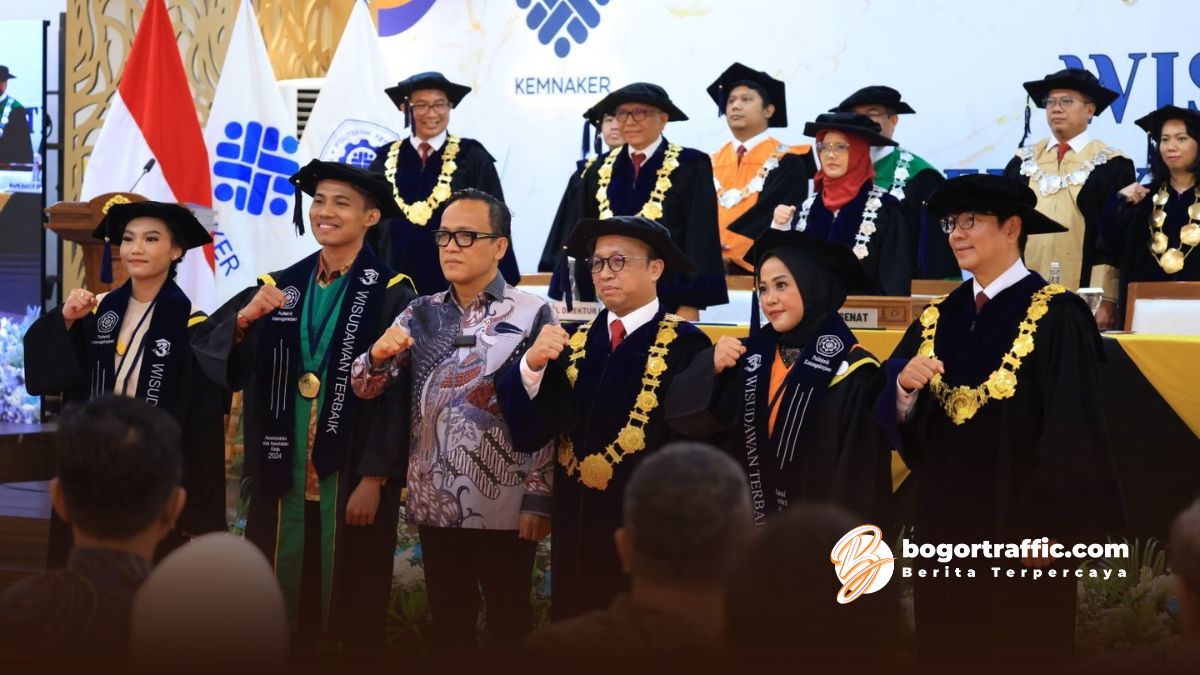 bogortraffic.com, BOGOR- Politeknik Ketenagakerjaan (Polteknaker) menggelar Sidang Senat Terbuka dalam rangka wisuda Tahun Akademik 2024/2025 di Ruang Serbaguna Kementerian Ketenagakerjaan, Jakarta, Sabtu.