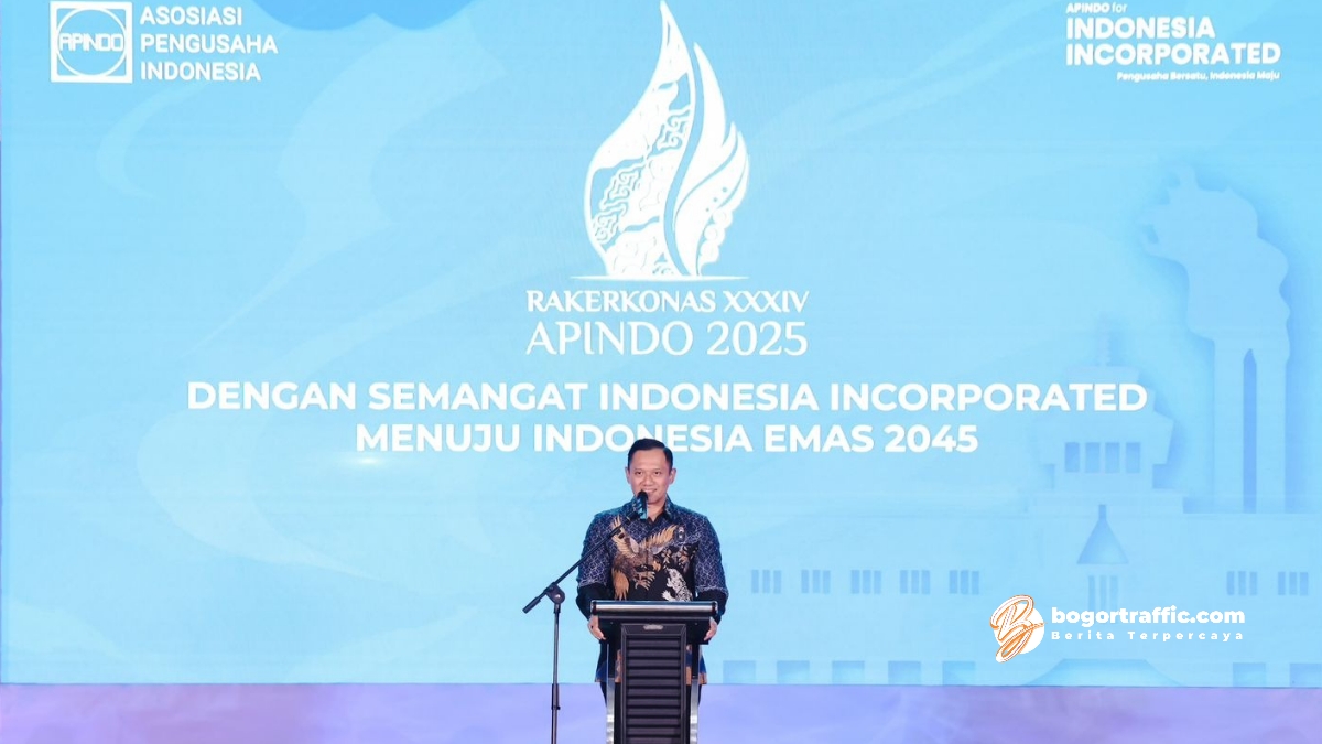 bogortraffic.com, BOGOR – Menteri Koordinator Bidang Infrastruktur dan Pembangunan Kewilayahan, Agus Harimurti Yudhoyono (AHY), mengajak para pelaku dunia usaha yang tergabung dalam Asosiasi Pengusaha Indonesia (Apindo) untuk mengambil peran aktif dan strategis dalam pembangunan infrastruktur nasional.