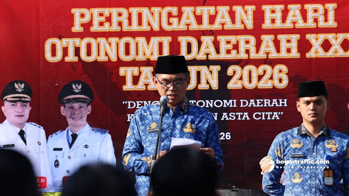 bogortraffic.com, CIBINONG — Sekretaris Daerah (Sekda) Kabupaten Bogor, Ajat Rochmat Jatnika, memimpin Upacara Peringatan Hari Otonomi Daerah ke-30 Tahun 2026. Upacara berlangsung khidmat di Halaman Kantor Sekretariat Daerah, Cibinong, pada Senin (27/4/2026).