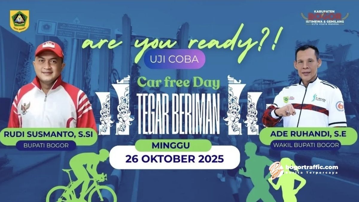 bogortraffic.com, BOGOR — Pemerintah Kabupaten (Pemkab) Bogor akan melaksanakan uji coba hari bebas kendaraan bermotor atau car free day (CFD) di Jalan Tegar Beriman pada Minggu (26/10/2025).