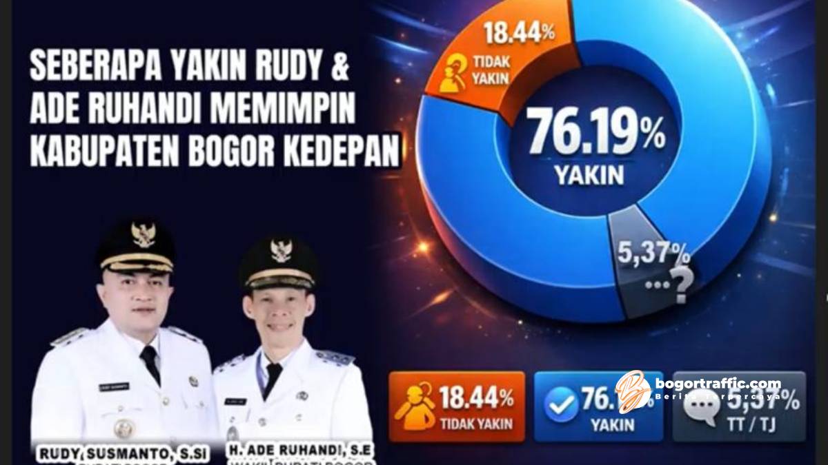 bogortraffic.com, KABUPATEN BOGOR – Memasuki satu tahun masa kepemimpinan Bupati Bogor, Rudy Susmanto, dan Wakil Bupati, H. Ade Ruhandi, Pemerintah Kabupaten (Pemkab) Bogor menerima rapor positif dari masyarakat. Berdasarkan data survei kepuasan publik terbaru dari lembaga Visi Nusantara, rata-rata indeks kepuasan masyarakat terhadap kinerja Pemda Bogor mencapai angka signifikan sebesar 83,29%.
