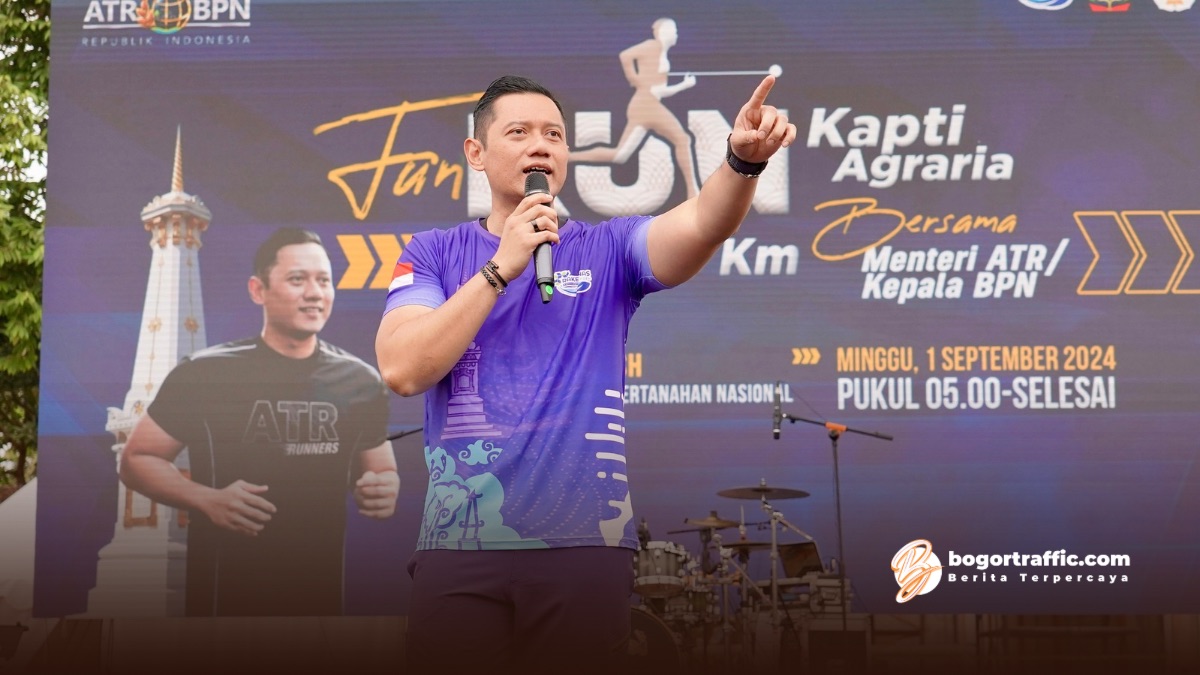bogortraffic.com, YOGYAKARTA – Menteri Agraria dan Tata Ruang/Kepala Badan Pertanahan Nasional (ATR/BPN), Agus Harimurti Yudhoyono (AHY) hadir dalam Fun Run Keluarga Alumni Pendidikan Tinggi Agraria (KAPTI-Agraria) yang berlangsung di Sekolah Tinggi Pertanahan Nasional (STPN) Yogyakarta, Kabupaten Sleman, Minggu (01/09/2024). Ia menyapa peserta sekaligus memberikan motivasi kepada taruna STPN yang mengikuti Fun Run.