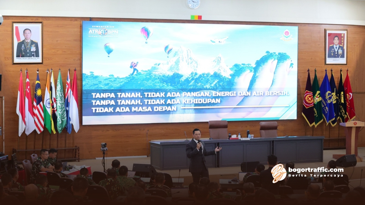 bogortraffic.com, BANDUNG – Menteri Agraria dan Tata Ruang/Kepala Badan Pertanahan Nasional (ATR/BPN), Agus Harimurti Yudhoyono (AHY) memberikan ceramah pembekalan kepada Pasis Dikreg LII Sesko TNI, di Gedung Graha Widya Adibrata Sesko TNI, Bandung, Jumat (06/09/2024).