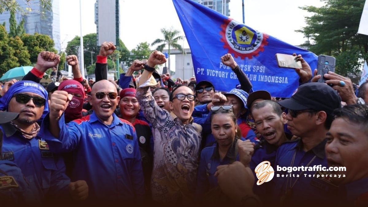 bogortraffic.com, BOGOR- Wakil Menteri Ketenagakerjaan, Immanuel Ebenezer Gerungan menerima perwakilan, serikat pekerja/serikat buruh (SP/SB) yang mengadakan aksi damai di halaman Gedung Kemnaker.