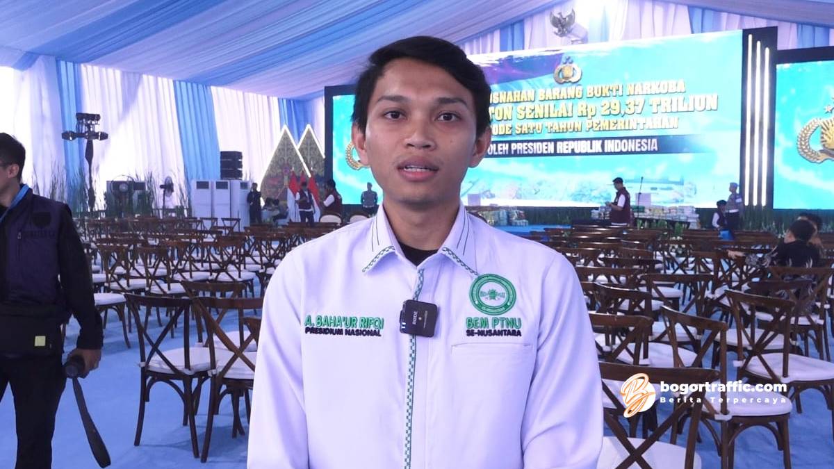 bogortraffic.com, BOGOR – Presidium Nasional Badan Eksekutif Mahasiswa Perguruan Tinggi Nahdlatul Ulama (BEM PTNU) menyampaikan apresiasi dan dukungan penuh terhadap langkah tegas Polri dalam pemberantasan narkoba, termasuk kegiatan pemusnahan barang bukti narkotika yang dipimpin langsung oleh Presiden Republik Indonesia, Rabu (29/10).