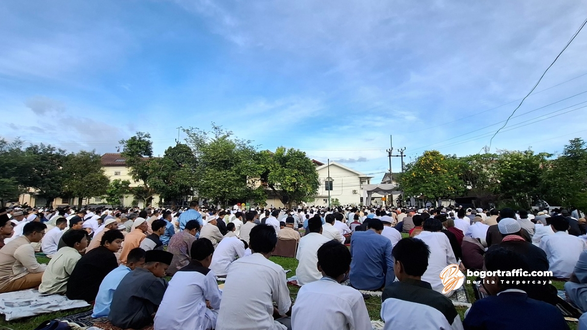 bogortraffic.com, BOGOR – Ribuan warga Perumahan Taman Pagelaran, Ciomas, Bogor, memadati Ruang Terbuka Hijau (RTH) untuk melaksanakan Shalat Idulfitri 1 Syawal 1446 H, Senin (31/3) pagi.